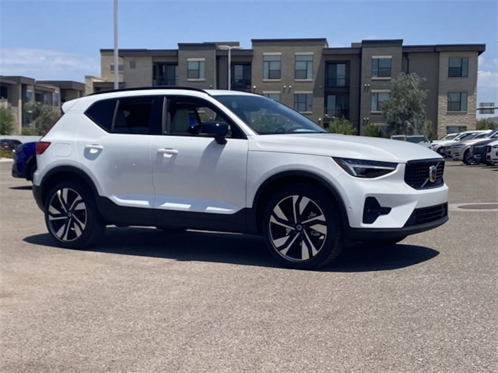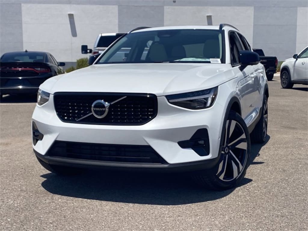 Crystal White Pearl 2025 Volvo XC40 B5 Plus Dark Theme AWD Automatic with Geartronic 2.0L I4 Turbocharged DOHC 16V LEV3-ULEV70 4-Wheel Disc Brakes, ABS brakes, Alloy wheels, Dual front impact airbags, Dual front side impact airbags, Electronic Stability Control, Emergency communication system, Front anti-roll bar, Front dual zone A/C, Heated door mirrors, Heated Front Seats, Heated front seats, Illuminated entry, Low tire pressure warning, Navigation System, Occupant sensing airbag, Overhead airbag, Power Liftgate, Power moonroof, Rear anti-roll bar, Remote keyless entry, Traction control.