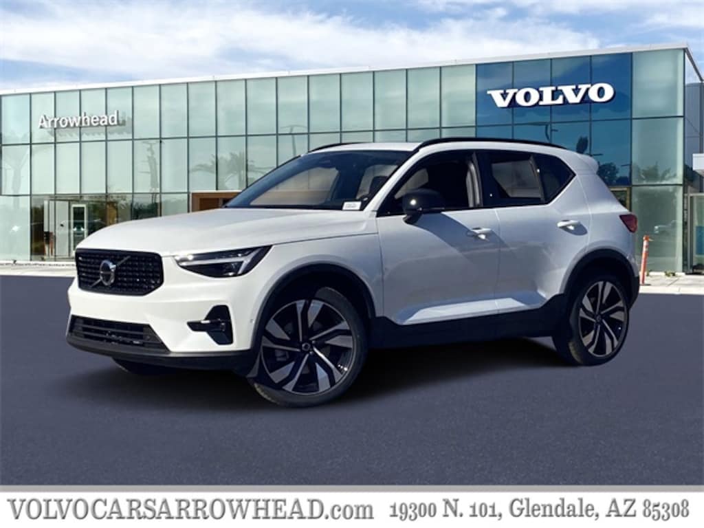 Crystal White 2025 Volvo XC40 B5 Ultra Dark Theme AWD Automatic with Geartronic 2.0L I4 Turbocharged DOHC 16V LEV3-ULEV70 13 Speakers, Air Conditioning, AM/FM radio: SiriusXM, Apple CarPlay, Auto High-beam Headlights, Auto-dimming door mirrors, Auto-dimming Rear-View mirror, Automatic temperature control, Exterior Parking Camera Rear, Front dual zone A/C, Front fog lights, Fully automatic headlights, Garage door transmitter: HomeLink, harman/kardon® Premium Sound System, Heated door mirrors, Heated Front Seats, Illuminated entry, Internet access capable: Digital Services Package w/ 4 Year Subscription, Leather Seating Surfaces, Memory seat, Navigation system: Google Maps w/ 4 Year Subscription, Power door mirrors, Power driver seat, Power Liftgate, Power moonroof, Power passenger seat, Power steering, Power windows, Radio data system, Remote keyless entry, Speed control, Steering wheel mounted audio controls, Tilt steering wheel, Turn signal indicator mirrors.