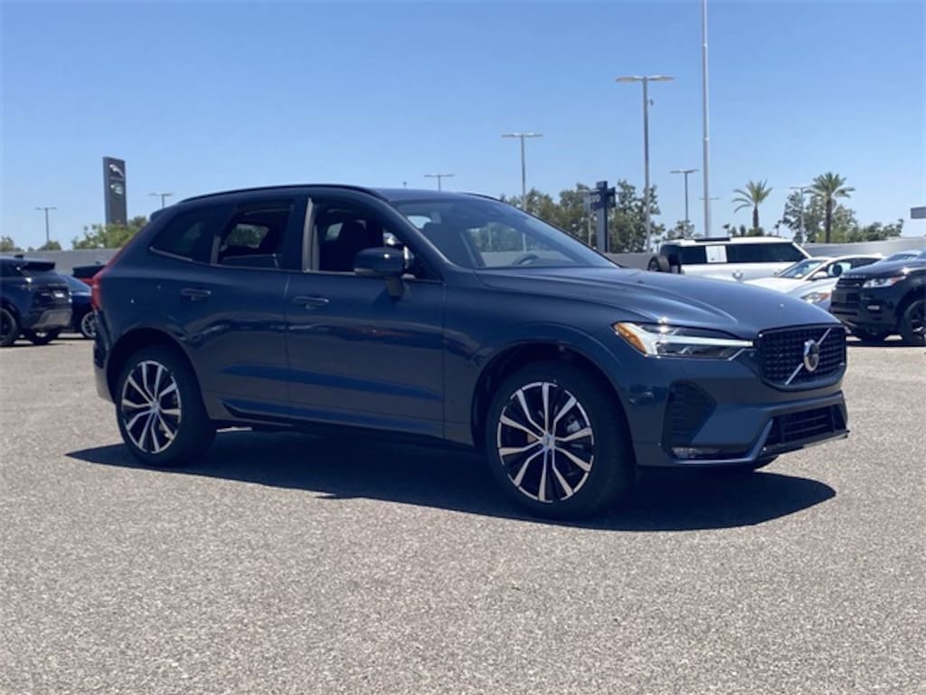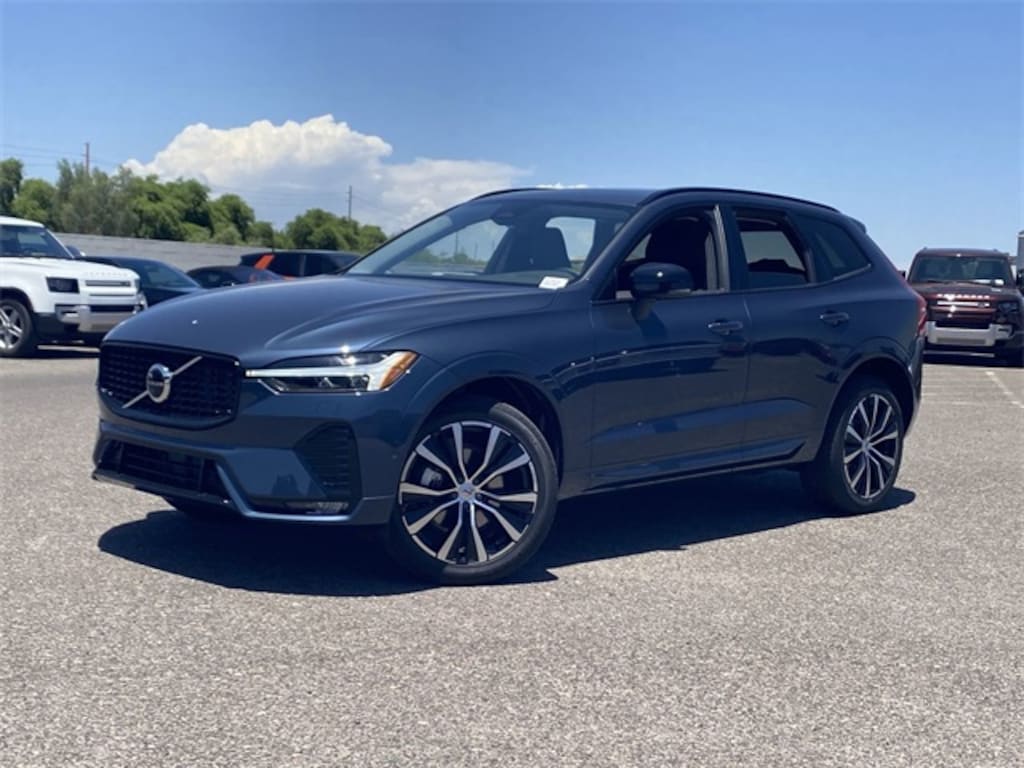 Denim Blue 2025 Volvo XC60 B5 Plus AWD Automatic with Geartronic 2.0L I4 Turbocharged DOHC 16V LEV3-ULEV70 AWD, 10 Speakers, Air Conditioning, AM/FM radio: SiriusXM, Apple CarPlay, Auto High-beam Headlights, Auto-dimming door mirrors, Auto-dimming Rear-View mirror, Automatic temperature control, Exterior Parking Camera Rear, Front dual zone A/C, Fully automatic headlights, Garage door transmitter: HomeLink, Heated door mirrors, Heated Front Bucket Seats, Illuminated entry, Leather Shift Knob, Leatherette Upholstery, Memory seat, Power driver seat, Power Liftgate, Power moonroof, Power passenger seat, Power steering, Power windows, Radio data system, Radio: High Performance Sound System, Remote keyless entry, Speed control, Steering wheel mounted audio controls, Tilt steering wheel, Turn signal indicator mirrors.