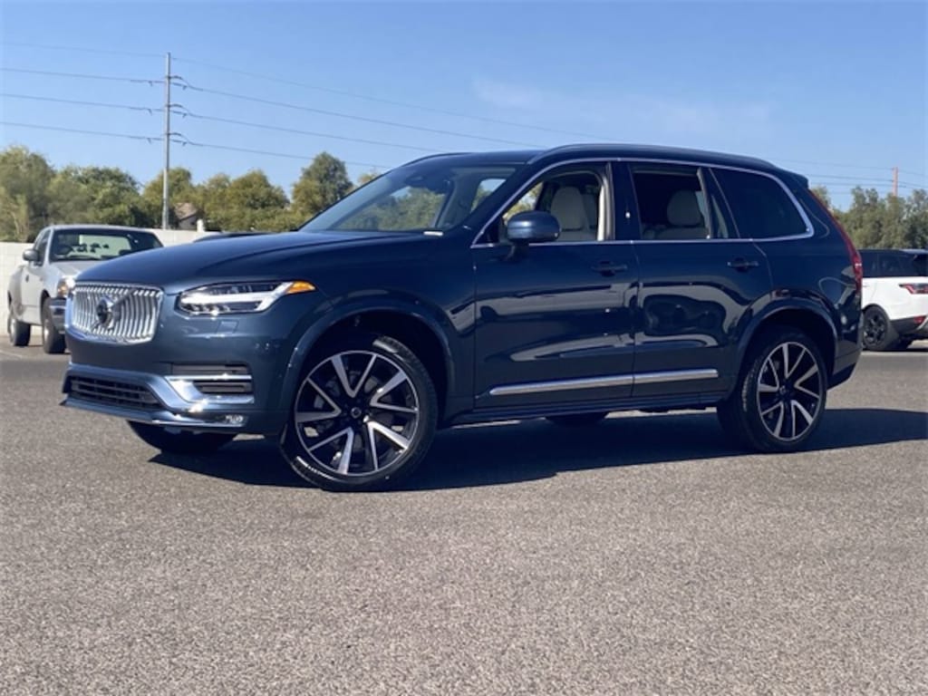 Denim Blue 2025 Volvo XC90 B5 Plus AWD Automatic with Geartronic 2.0L I4 Turbocharged DOHC 16V LEV3-ULEV70 AWD, Blond Leather, 10 Speakers, Air Conditioning, AM/FM radio: SiriusXM, Apple CarPlay, Auto High-beam Headlights, Auto-dimming door mirrors, Auto-dimming Rear-View mirror, Automatic temperature control, Exterior Parking Camera Rear, Front dual zone A/C, Fully automatic headlights, Garage door transmitter: HomeLink, Headlight cleaning, Heated door mirrors, Heated front seats, Heated steering wheel, Illuminated entry, Integrated rear child seats, Memory seat, Navigation System, Power door mirrors, Power driver seat, Power Liftgate, Power moonroof, Power steering, Power windows, Radio data system, Radio: High Performance Audio System, Rear air conditioning, Rear dual zone A/C, Remote keyless entry, Speed control, Steering wheel mounted audio controls, Telescoping steering wheel, Turn signal indicator mirrors.