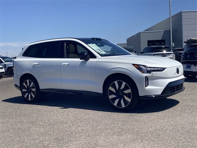 Crystal White Metallic 2025 Volvo EX90 Twin Motor Ultra 7-Seater AWD 1-Speed Automatic Electric Motor 14 Speakers, AM/FM radio: SiriusXM, Auto High-beam Headlights, Auto-dimming door mirrors, Auto-dimming Rear-View mirror, Automatic temperature control, Brake assist, Delay-off headlights, Electronic Stability Control, Exterior Parking Camera Rear, Front dual zone A/C, Fully automatic headlights, Headlight cleaning, Heads-Up Display, Heated door mirrors, Heated Front Seats, Heated rear seats, Heated steering wheel, Illuminated entry, Integrated rear child seats, Navigation System, Nordico Upholstery, Power door mirrors, Power driver seat, Power Liftgate, Power steering, Power windows, Radio data system, Radio: Bose Performance Audio w/14 Speakers, Rear air conditioning, Rear dual zone A/C, Speed control, Steering wheel mounted audio controls, Tilt steering wheel, Traction control, Turn signal indicator mirrors.
