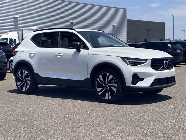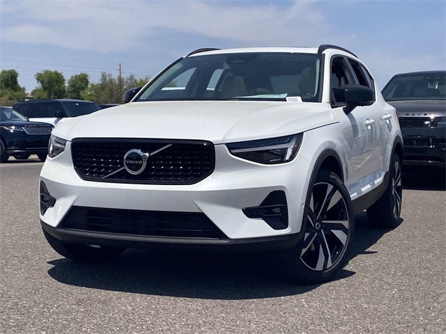 Crystal White Pearl 2025 Volvo XC40 B5 Plus Dark Theme AWD Automatic with Geartronic 2.0L I4 Turbocharged DOHC 16V LEV3-ULEV70 8 Speakers, Air Conditioning, AM/FM radio: SiriusXM, Apple CarPlay, Auto High-beam Headlights, Auto-dimming door mirrors, Auto-dimming Rear-View mirror, Automatic temperature control, Exterior Parking Camera Rear, Front dual zone A/C, Front fog lights, Fully automatic headlights, Garage door transmitter: HomeLink, Heated door mirrors, Heated Front Seats, Illuminated entry, Internet access capable: Digital Services Package w/ 4 Year Subscription, Leather Seating Surfaces, Memory seat, Navigation system: Google Maps w/ 4 Year Subscription, Power door mirrors, Power driver seat, Power Liftgate, Power moonroof, Power passenger seat, Power steering, Power windows, Radio data system, Radio: High Performance Sound System, Remote keyless entry, Speed control, Steering wheel mounted audio controls, Tilt steering wheel, Turn signal indicator mirrors.