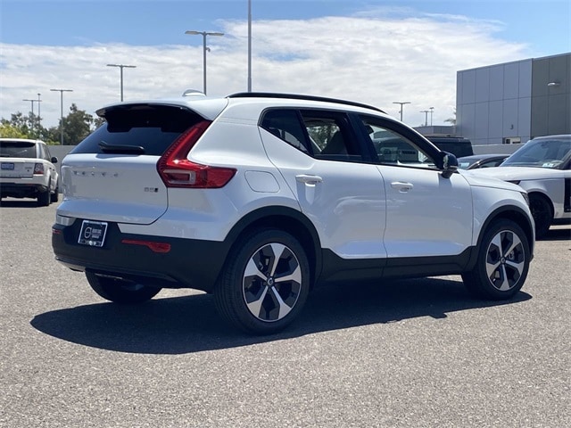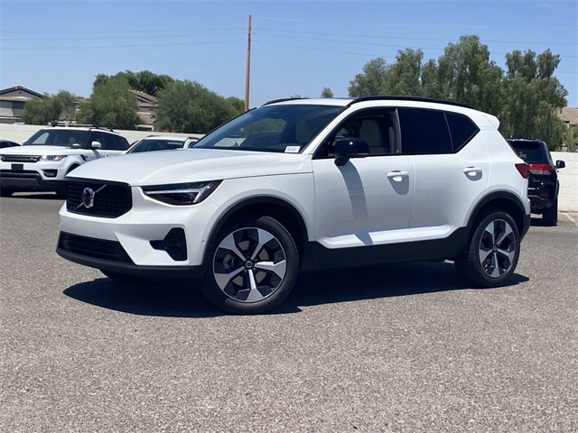 Crystal White Pearl 2025 Volvo XC40 B5 Plus Dark Theme AWD Automatic with Geartronic 2.0L I4 Turbocharged DOHC 16V LEV3-ULEV70 8 Speakers, Air Conditioning, Apple CarPlay, Auto High-beam Headlights, Auto-dimming door mirrors, Auto-dimming Rear-View mirror, Automatic temperature control, Exterior Parking Camera Rear, Front dual zone A/C, Front fog lights, Fully automatic headlights, Garage door transmitter: HomeLink, Heated door mirrors, Heated Front Seats, Illuminated entry, Internet access capable: Digital Services Package w/ 4 Year Subscription, Leather Seating Surfaces, Memory seat, Navigation system: Google Maps w/ 4 Year Subscription, Power door mirrors, Power driver seat, Power Liftgate, Power moonroof, Power passenger seat, Power steering, Power windows, Radio: High Performance Sound System, Remote keyless entry, Speed control, Steering wheel mounted audio controls, Tilt steering wheel, Turn signal indicator mirrors.