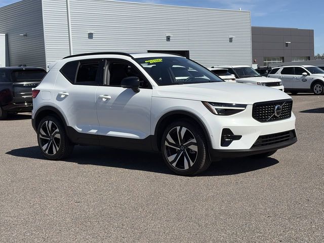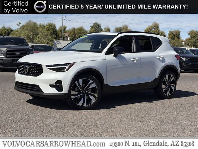 Certified. Crystal White Pearl 2025 Volvo XC40 B5 Plus Dark Theme AWD Automatic with Geartronic 2.0L I4 Turbocharged DOHC 16V LEV3-ULEV70 8 Speakers, Air Conditioning, Apple CarPlay, Auto High-beam Headlights, Auto-dimming door mirrors, Auto-dimming Rear-View mirror, Automatic temperature control, Exterior Parking Camera Rear, Front dual zone A/C, Front fog lights, Fully automatic headlights, Garage door transmitter: HomeLink, Heated door mirrors, Heated Front Seats, Illuminated entry, Internet access capable: Digital Services Package w/ 4 Year Subscription, Leather Seating Surfaces, Memory seat, Navigation system: Google Maps w/ 4 Year Subscription, Power door mirrors, Power driver seat, Power Liftgate, Power moonroof, Power steering, Power windows, Radio data system, Radio: High Performance Sound System, Remote keyless entry, Speed control, Steering wheel mounted audio controls, Tilt steering wheel, Turn signal indicator mirrors.