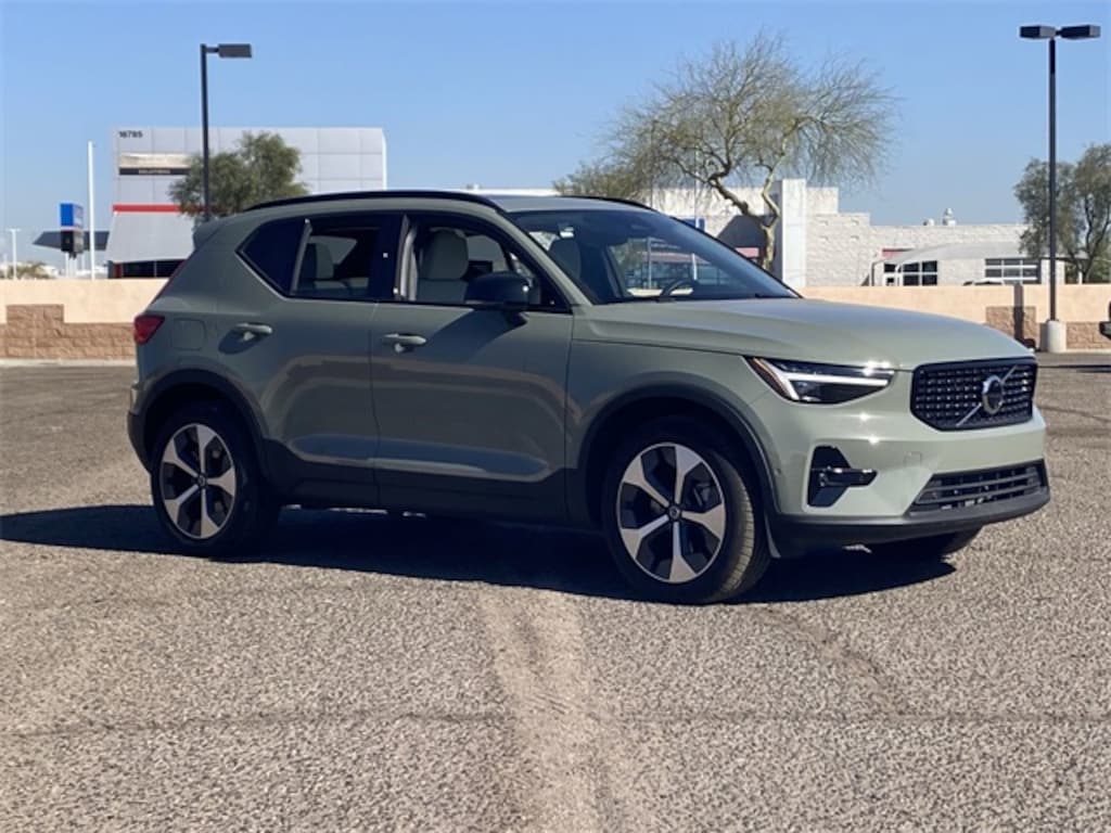 Sage Green Metallic 2025 Volvo XC40 B5 Plus Dark Theme AWD Automatic with Geartronic 2.0L I4 Turbocharged DOHC 16V LEV3-ULEV70 8 Speakers, Air Conditioning, AM/FM radio: SiriusXM, Apple CarPlay, Auto High-beam Headlights, Auto-dimming door mirrors, Auto-dimming Rear-View mirror, Automatic temperature control, Exterior Parking Camera Rear, Front dual zone A/C, Front fog lights, Fully automatic headlights, Garage door transmitter: HomeLink, Heated door mirrors, Heated Front Seats, Illuminated entry, Internet access capable: Digital Services Package w/ 4 Year Subscription, Memory seat, Navigation system: Google Maps w/ 4 Year Subscription, Power door mirrors, Power driver seat, Power Liftgate, Power moonroof, Power passenger seat, Power steering, Power windows, Radio data system, Radio: High Performance Sound System, Rear window defroster, Remote keyless entry, Speed control, Split folding rear seat, Steering wheel mounted audio controls, Tilt steering wheel, Turn signal indicator mirrors.