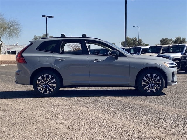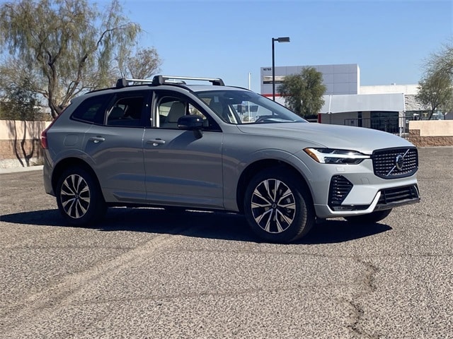 Gray Metallic 2025 Volvo XC60 B5 Core AWD Automatic with Geartronic 2.0L I4 Turbocharged DOHC 16V LEV3-ULEV70 AWD, 10 Speakers, Air Conditioning, AM/FM radio: SiriusXM, Apple CarPlay, Auto High-beam Headlights, Auto-dimming door mirrors, Auto-dimming Rear-View mirror, Automatic temperature control, Emergency communication system: Volvo Cars App w/4 Year Subscription, Exterior Parking Camera Rear, Front dual zone A/C, Front fog lights, Fully automatic headlights, Heated door mirrors, Heated front seats, Illuminated entry, Leather Shift Knob, Leatherette Upholstery, Memory seat, Power door mirrors, Power driver seat, Power Liftgate, Power moonroof, Power passenger seat, Power steering, Power windows, Radio data system, Radio: High Performance Sound System, Remote keyless entry, Speed control, Spoiler, Steering wheel mounted audio controls, Tilt steering wheel, Turn signal indicator mirrors.