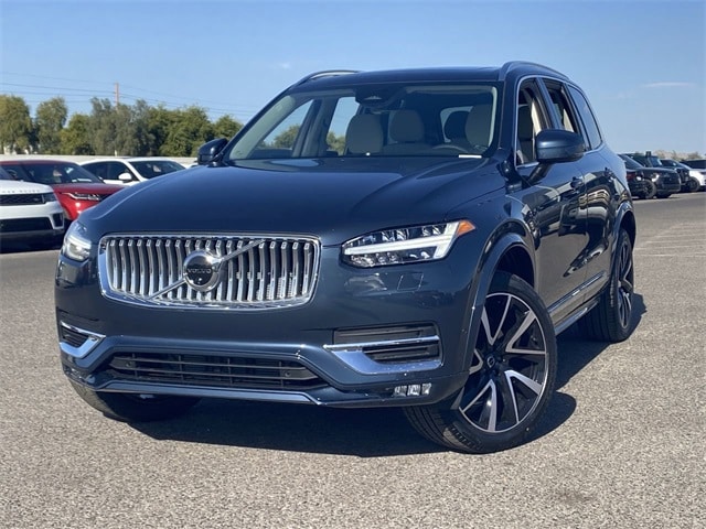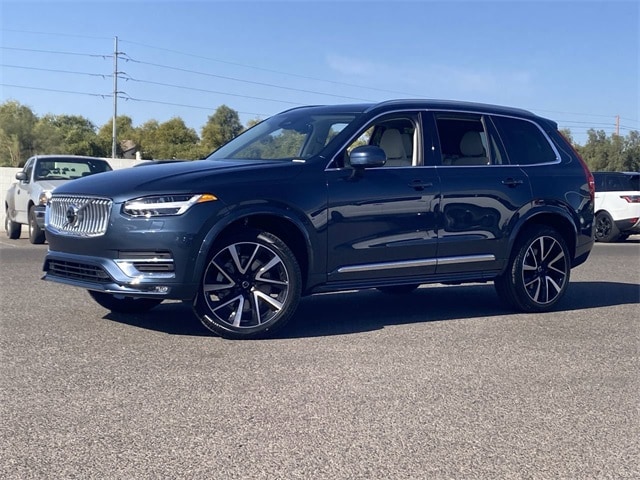 Denim Blue Metallic 2025 Volvo XC90 B5 Plus AWD Automatic with Geartronic 2.0L I4 Turbocharged DOHC 16V LEV3-ULEV70 AWD, Blonde Leather, 10 Speakers, Air Conditioning, AM/FM radio: SiriusXM, Apple CarPlay, Auto High-beam Headlights, Auto-dimming door mirrors, Auto-dimming Rear-View mirror, Automatic temperature control, Exterior Parking Camera Rear, Front dual zone A/C, Fully automatic headlights, Garage door transmitter: HomeLink, Headlight cleaning, Heated door mirrors, Heated front seats, Heated steering wheel, Illuminated entry, Integrated rear child seats, Memory seat, Navigation System, Power door mirrors, Power driver seat, Power Liftgate, Power moonroof, Power steering, Power windows, Radio data system, Radio: High Performance Audio System, Rear air conditioning, Rear dual zone A/C, Remote keyless entry, Speed control, Steering wheel mounted audio controls, Telescoping steering wheel, Turn signal indicator mirrors.