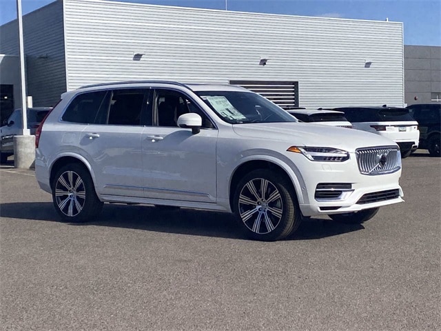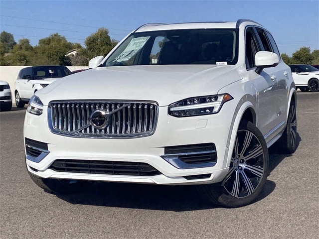 Crystal White Pearl 2025 Volvo XC90 Plug-In Hybrid T8 Plus 6 Passenger AWD Automatic with Geartronic 2.0L I4 Hybrid Turbocharged DOHC 16V LEV3-SULEV30 2.0L I4 Hybrid Turbocharged DOHC 16V LEV3-SULEV30, 11 Speakers, Air Conditioning, AM/FM radio: SiriusXM, Apple CarPlay, Auto High-beam Headlights, Auto-dimming door mirrors, Auto-dimming Rear-View mirror, Automatic temperature control, Exterior Parking Camera Rear, Front dual zone A/C, Fully automatic headlights, Garage door transmitter: HomeLink, Headlight cleaning, Heated door mirrors, Heated front seats, Heated steering wheel, Illuminated entry, Integrated rear child seats, Leather Upholstery, Memory seat, Navigation System, Power door mirrors, Power driver seat, Power Liftgate, Power moonroof, Power passenger seat, Power steering, Power windows, Radio data system, Radio: High Performance Audio System, Rear air conditioning, Rear dual zone A/C, Remote keyless entry, Speed control, Split folding rear seat, Steering wheel mounted audio controls, Telescoping steering wheel, Turn signal indicator mirrors.