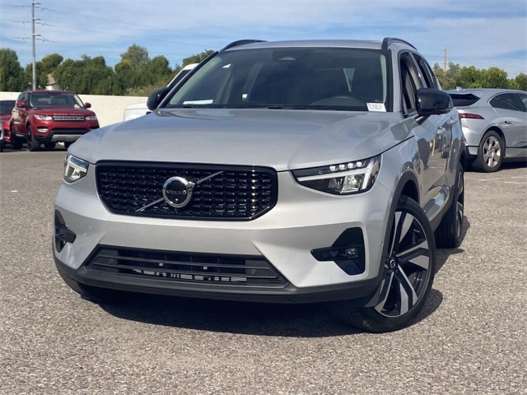 Silver 2023 Volvo XC40 B4 Plus Dark Theme FWD Automatic with Geartronic 2.0L I4 Turbocharged DOHC 16V LEV3-ULEV70 8 Speakers, Air Conditioning, AM/FM Radio, Apple CarPlay, Auto High-beam Headlights, Auto-dimming door mirrors, Auto-dimming Rear-View mirror, Automatic temperature control, Brake assist, Connect Suede Textile/Microtech Seating Surfaces, Electronic Stability Control, Exterior Parking Camera Rear, Front dual zone A/C, Fully automatic headlights, Garage door transmitter: HomeLink, Heated door mirrors, Heated front seats, Illuminated entry, Internet access capable: Digital Services Package w/ 4 Year Subscription, Memory seat, Navigation System, Power door mirrors, Power driver seat, Power moonroof, Power passenger seat, Power steering, Power windows, Rain sensing wipers, Rear window defroster, Remote keyless entry, Speed control, Steering wheel mounted audio controls, Tilt steering wheel, Turn signal indicator mirrors, Variably intermittent wipers.